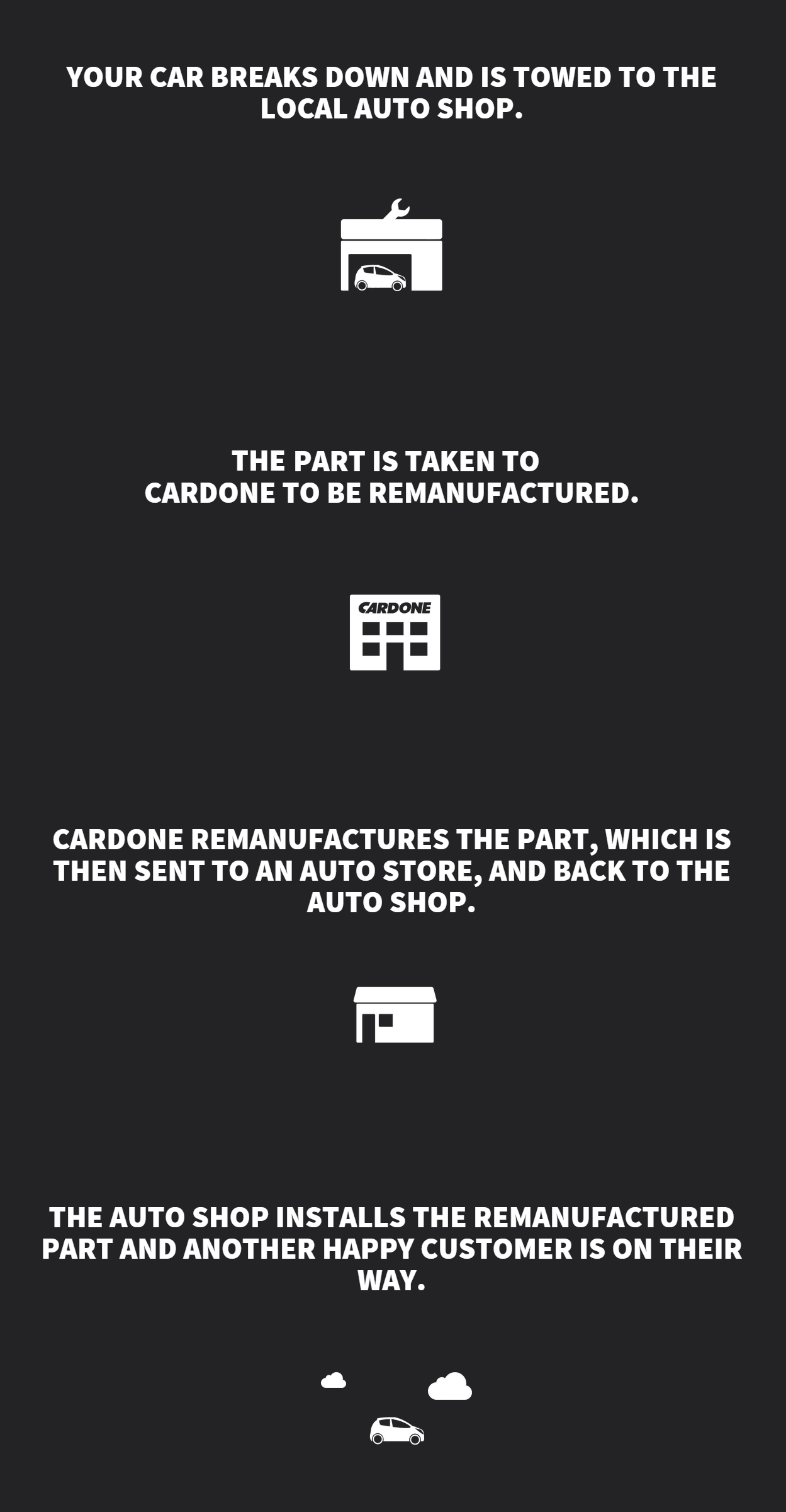 The salesman asked, “Do you think you can fix this?” Mr. Cardone studied the motor for a moment and replied, “If they manufactured it, then it can be remanufactured.”